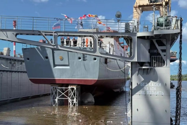 The Russian Navys new Project 22350 frigate ‘Admiral Amelko was launched on August 14 at the Severnaya Verf Shipyard in St. Petersburg